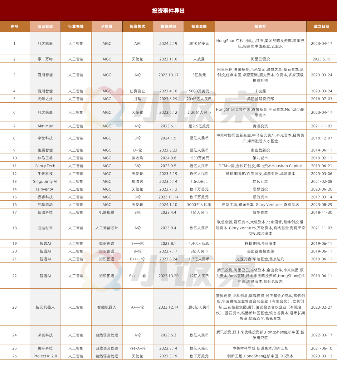 腾讯则下注了百川智能、智谱AI和MiniMax 3家,还包括已经被美团收购的光年之外,以及另一家清华系创企深言科技。